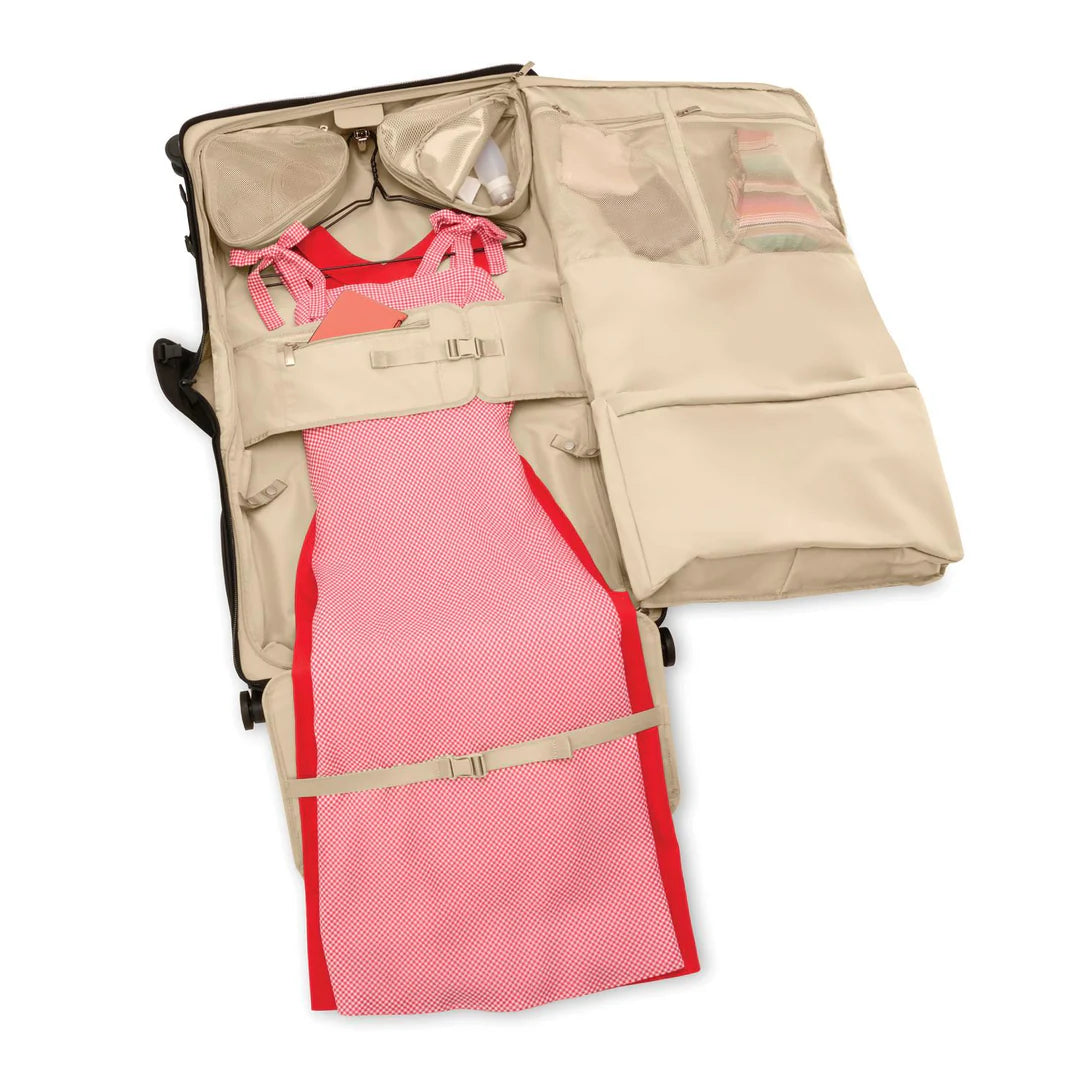 - Spacious center tie down in suiter compartment secures your attire by adding compression, reduces shifting while in transit.