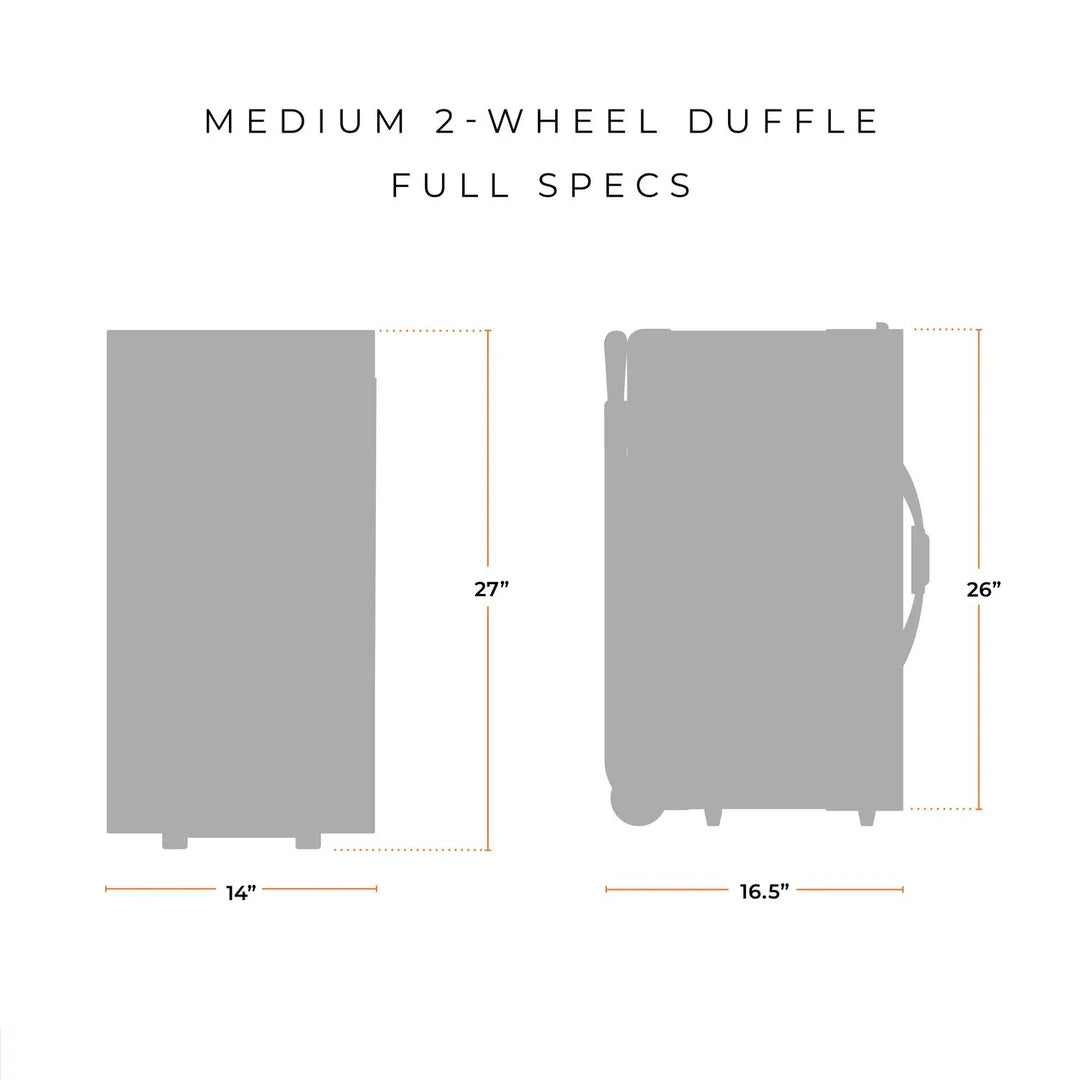 With its hybrid design of duffle bag and upright suitcase, our Baseline Medium Two-Wheeled Duffle keeps your attire at its sharpest. This garment luggage with wheels lets you pack and travel exactly how you want, with a duffle section that holds your clothes gently and minimizes wrinkles, plus a classic two-wheel upright structure that easily navigates bumpy streets and other challenges. When you’re on the road and impressions count, this bag always has your back.